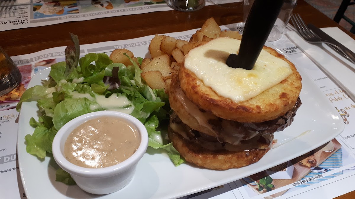 Restaurant bien situé en pleine zone commerciale avec un parking suffisamment grand. L'accueil est souriant et le service rapide. Les plats sont copieux et variés, il y a bien sûr différentes déclinaisons de pommes de terre mais également des burgers, salades et même une assiette végétarienne. Mention spéciale au dessert la Timbale Créole, subtile mélange de vanille, fruits rouges et crumble.